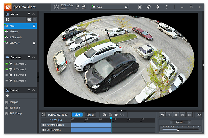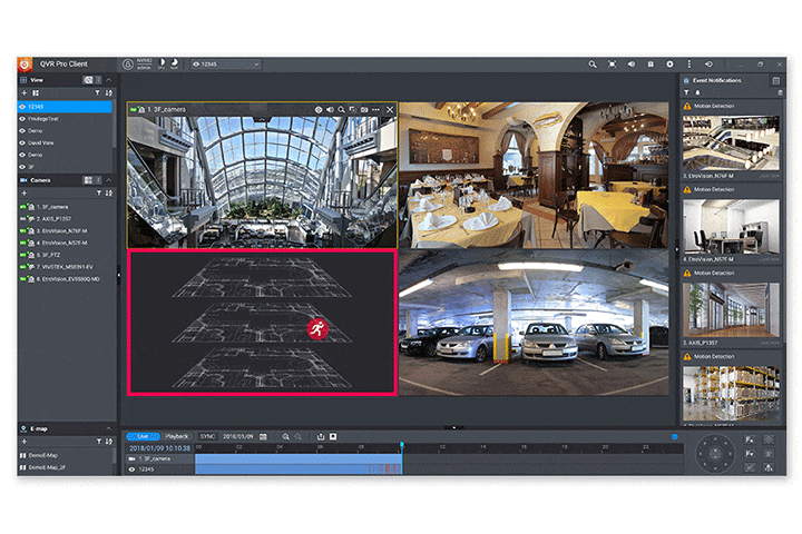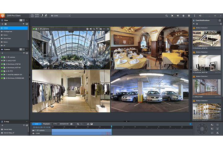 Oprogramowanie QVR Pro Client można zainstalować w urządzeniach z systemem Windows® i Mac®, co umożliwia dostęp z różnych platform oraz pozwala na elastyczne przełączanie pomiędzy trybem widoku na żywo a trybem odtwarzania, aby mieć pełną kontrolę nad monitorowanymi obszarami.